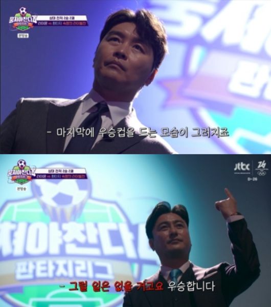 지난 11일 방송된 JTBC 스포츠 예능 '뭉쳐야 찬다4' 39회에서는 '판타지리그' 최대 라이벌인 안정환 감독의 'FC환타지스타'와 이동국 감독의 '라이온하츠FC'가 정규리그 마지막 경기에서 맞붙었다. 상대 전적 2승 2패로 팽팽했던 두 팀은 이날 경기에서도 물러섬 없는 공방을 펼치며 2:2 무승부로 경기를 마쳤다.