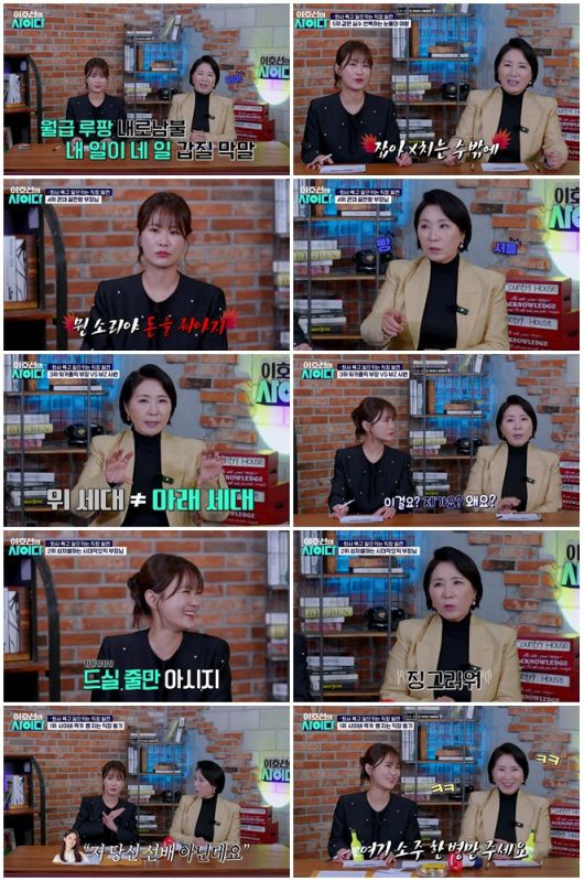 [스포츠조선 김소희 기자]'이호선의 사이다' 이호선과 김지민이 "갑질 막말은 영혼까지 죽이는 일"이라며 '퇴사 욕구'를 일으키는 직장 빌런들을 향해 분노를 폭발시켰다.