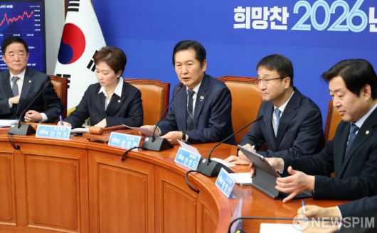 [서울=뉴스핌] 정일구 기자 = 정청래 더불어민주당 대표가 12일 오전 서울 여의도 국회에서 열린 최고위원회의에서 모두발언을 하고 있다. 2026.01.12 mironj19@newspim.com