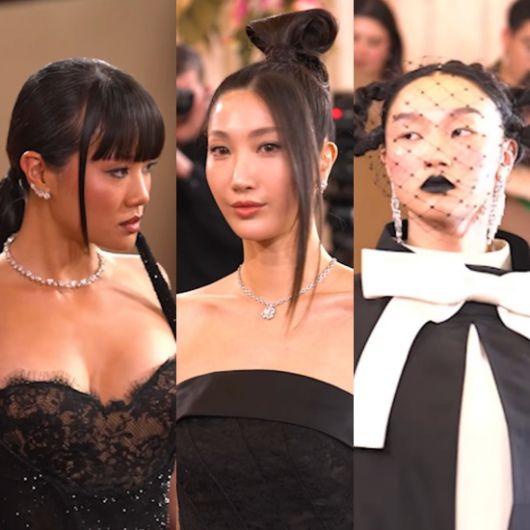 먼저 오드리 누나는 검은색 케이프 형태의 의상에 리본으로 디테일을 더했고, 얼굴을 감싸는 베일 장식에 블랙 립 메이크업으로 포인트를 줬다.