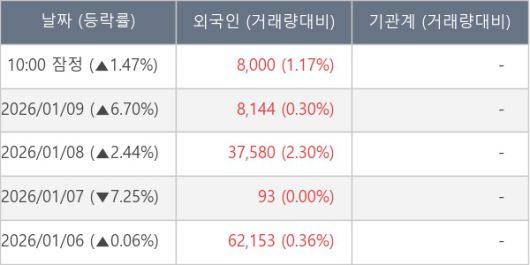 [표] 외국인ㆍ기관 순매매량 (단위 주)