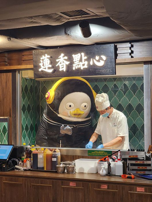 펭수가 홍콩의 전통 딤섬집 ‘린 헝 라우(Lin Heung Lau)’ 직원으로 변신해, 셰프에게 딤섬 만드는 과정을 배우는 모습 (사진=홍콩관광청) |
