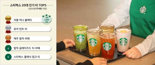 2위는 ‘유자 민트 티’가 차지했으며 3, 4위는 각각 말차 인기에 힘입어 ‘제주 말차 라떼’, ‘말차 글레이즈드 티 라떼(시즌 종료)’가 이름을 올렸다. 5위는 ‘스타벅스 클래식 밀크 티’가 선정됐다.