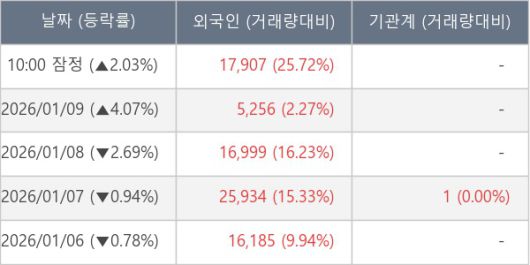 [표] 외국인ㆍ기관 순매매량 (단위 주)