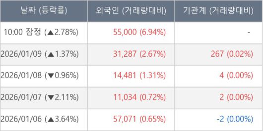 [표] 외국인ㆍ기관 순매매량 (단위 주)