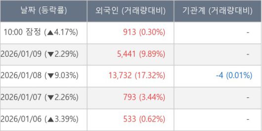 [표] 외국인ㆍ기관 순매매량 (단위 주)