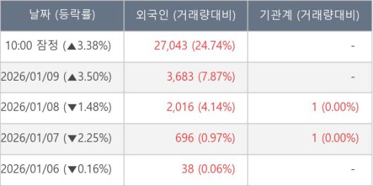 [표] 외국인ㆍ기관 순매매량 (단위 주)