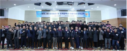지난 1월 8일부터 9일까지 전남 나주시 소재 중흥골드스파&리조트에서 진행된 안전교육에 참석한 중흥그룹 임직원들이 기념촬영을 하고 있다. |