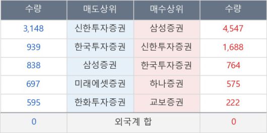 [표] 외국인ㆍ기관 순매매량 (단위 주)