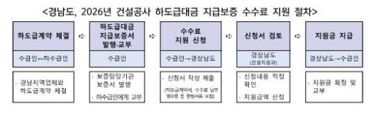 [창원=뉴시스]홍정명 기자 = 경남도는 지역 건설산업 활력을 높이고 하도급 업체 보호를 위해 '2026년 건설공사 하도급대금 지급보증 수수료 지원사업’을 확대 추진한다고 12일 밝혔다.