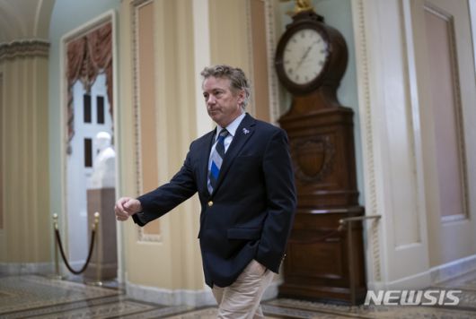 [워싱턴DC=AP/뉴시스] 도널드 트럼프 미국 대통령은 이란이 반정부 시위를 강경 진압할 경우 개입하겠다고 시사한 가운데 미국 정치권에서 군사 행동 위험성을 경고하는 목소리가 나왔다. 사진은 미국 공화당 소속 랜드 폴 상원의원이 2020년 2월13일 미 워싱턴DC 국회의사당에 있는 상원 회의실로 걸어가는 모습. 2026.01.12. |
