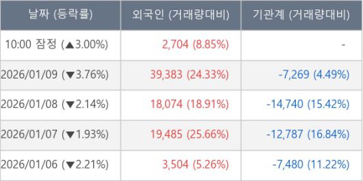 [표] 외국인ㆍ기관 순매매량 (단위 주)
