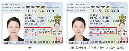 다만, 국민 혼란을 방지하고자 부칙에 따라 기존 운전면허 소지자의 개정 이후 첫 갱신에 대해서는 기존 기간인 '2026년 1월 1일부터 12월 31일'을 함께 적용한다. 정확한 운전면허증 적성검사·갱신 기간은 공단 누리집(www.safedriving.or.kr) 마이페이지를 통해 확인할 수 있다.