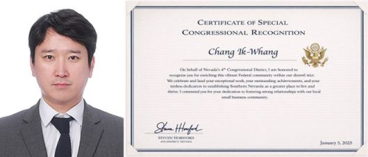장 교수는 이러한 성과를 인정받아 네바다 4지구를 대표하는 스티븐 호스포드 하원의원으로부터 '의회 특별 표창'을 받았다.