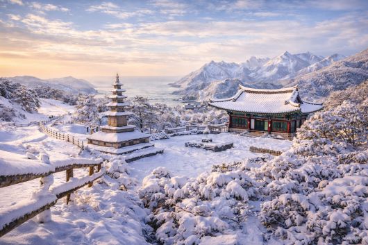 설악산 능선에 쌓인 눈과 절 마당의 적막은 겨울 특유의 정서를 만든다. 장시간 산행보다는 사찰 주변을 천천히 걷는 일정이 어울린다. 눈과 바람, 그리고 소리 없는 풍경이 여행의 중심이 된다.
