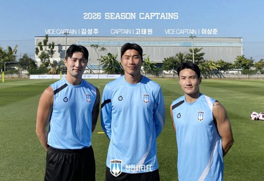 천안시민프로축구단(천안시티FC)은 2026시즌 팀을 이끌 주장단으로 주장 고태원, 부주장 김성주와 이상준을 선임했다고 12일 밝혔다.
