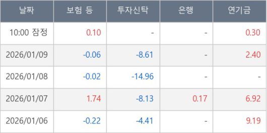 [표] 주요 기관별 순매매량 (단위 만주)