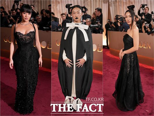 애니메이션 영화 '케이팝 데몬 헌터스'의 레이 아미, 오드리 누나, 이재가 11일(현지 시간) 미 캘리포니아주 베벌리힐스의 베벌리 힐튼에서 열리는 제83회 골든글로브 시상식에 도착해 포토타임을 갖고 있다. /베벌리힐스=AP.뉴시스 |