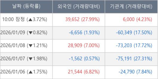※ 사모펀드 등 일부 기관의 순매매량은 표시되지 않음
