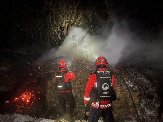 산림 당국, 지방정부, 소방 등의 밤새 작업과 일출 동시에 산불 진화 헬기 10대를 총력투입해 잔불 정리를 완료했다.