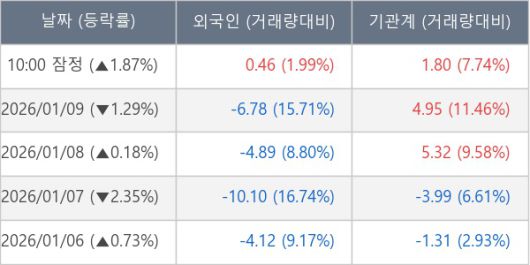[표] 외국인ㆍ기관 순매매량 (단위 만주)