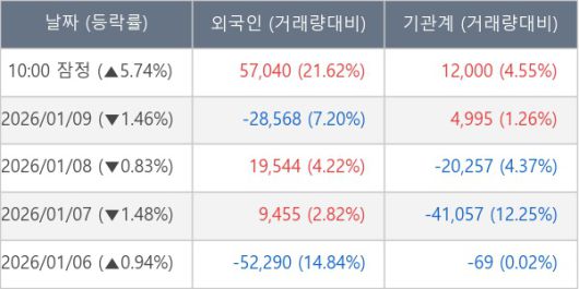 [서울=뉴스핌] 로보뉴스 = 12일 10시 15분 현재 포스코퓨처엠(003670)은 외국인과 기관이 각각 5.70 만 주, 1.20 만 주 순매수(잠정) 하면서 전일 대비 5.74% (현재가 186,000원) 상승하고 있다.