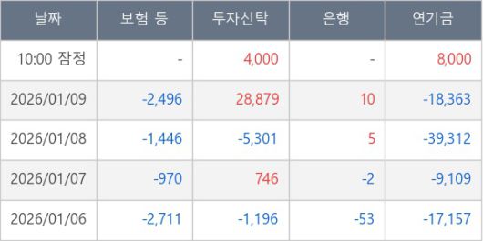 [표] 주요 기관별 순매매량 (단위 주)
