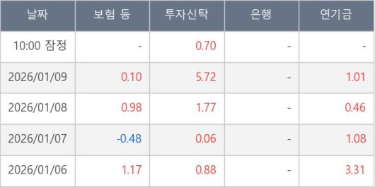 [표] 주요 기관별 순매매량 (단위 만주)