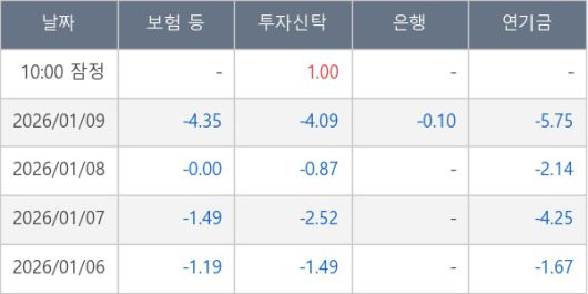 [표] 주요 기관별 순매매량 (단위 만주)