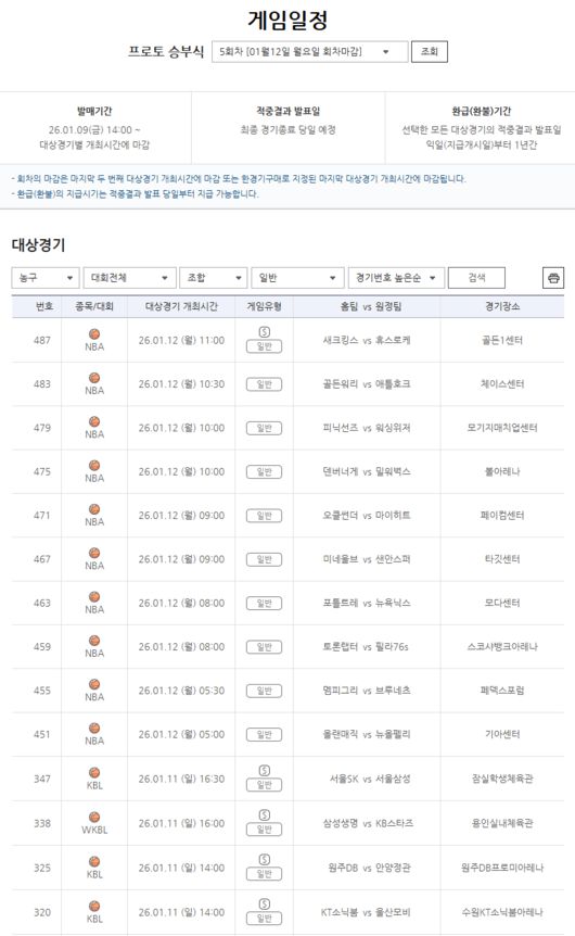 <사진>스포츠토토 프로토 승부식 5회차 농구 게임 안내