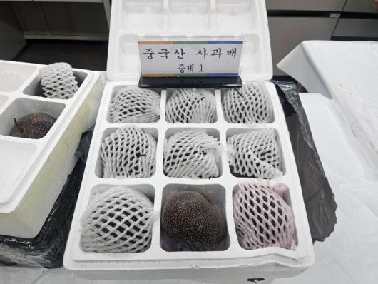 구체적으로 식물방역법상 검역을 받지 않은 중국산 건대추·생땅콩·건고추 등과 수입이 금지된 중국산 생과실·사과 묘목 등이다.