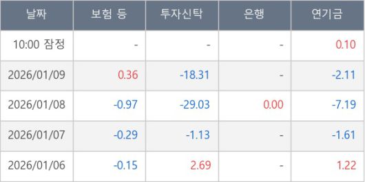 [표] 주요 기관별 순매매량 (단위 만주)