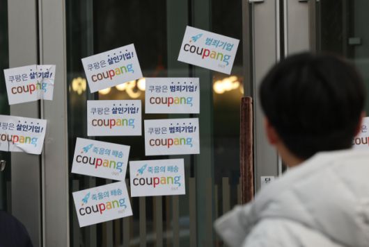 ▲2025년 12월 29일 서울 송파구 쿠팡 본사에 붙은 쿠팡 규탄 스티커. ⓒ연합뉴스 |