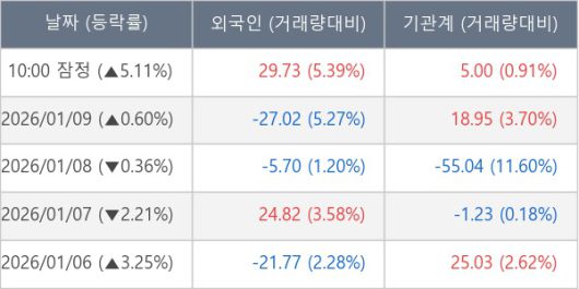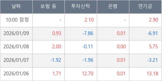 [표] 주요 기관별 순매매량 (단위 만주)