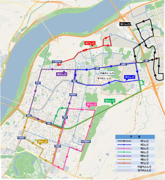무료 셔틀버스 전체 노선도. 강동구 제공 |