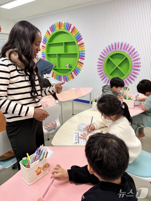 에티오피아 참전용사 후손인 에덴 윈드워슨씨가 지난 9일 화천커뮤니티센터를 찾아 아이들에게 영어 특강을 하고 있다. (화천군 제공, 재판매 및 DB금지) |