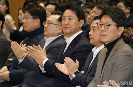[서울=뉴스핌] 양윤모 기자 = 오세훈 서울시장이 12일 오전 서울시청에에서 개최된 '서울시 2026년 신년 직원정례조례' 행사에 참석해 국민이례를 하고 있다. 2026.01.12 yym58@newspim.com