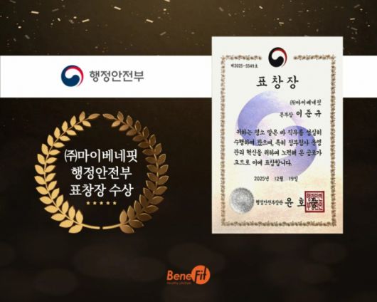 디지털 헬스케어 기업 ㈜마이베네핏이 정부청사 입주 공무원의 건강·체력 관리 지원 사업 운영 공로를 인정받아 행정안전부 장관 표창을 수상했다.