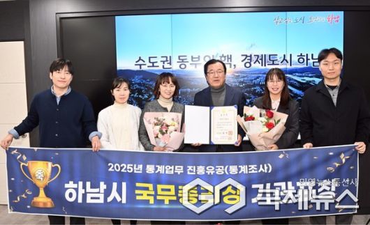 (하남=국제뉴스) 강정훈 기자 = ㅜ하남시(시장 이현재)는 국가데이터처가 주관하는 통계조사에서 통계업무 발전에 기여한 공로를 인정받아 2026년 1월 9일 통계인재개발원에서 '2025년 통계업무 진흥유공'부문 국무총리 기관표창을 수상했다고 밝혔다.