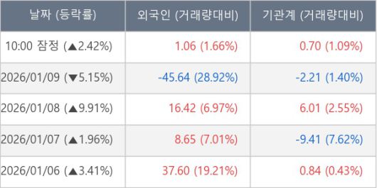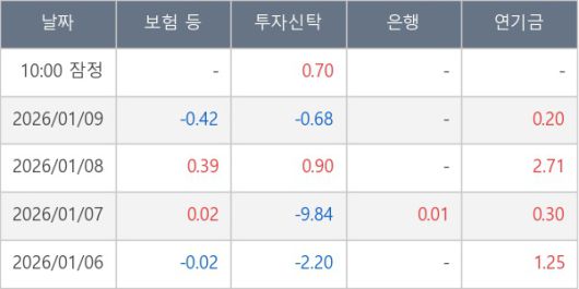 [표] 주요 기관별 순매매량 (단위 만주)