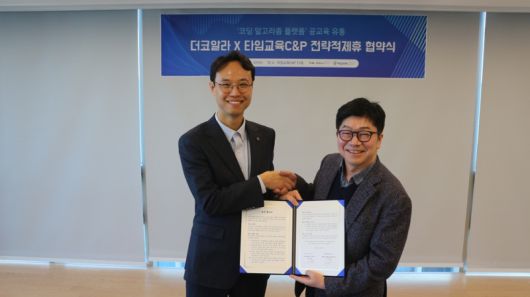 [서울경제TV=정명진 인턴기자] 더코알라와 타임교육C&P는 지난 7일 공교육 시장 내 알고리즘 및 프로그래밍 교육 확산을 위한 전략적 업무협약(MOU)을 체결했다고 12일 밝혔다.