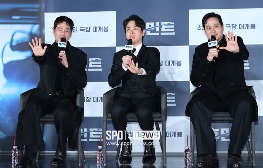 [스포티비뉴스=서울, 곽혜미 기자] 영화 '휴민트' 제작보고회가 12일 오전 서울 광진구 자양동 롯데시네마 건대입구점에서 열렸다. 배우 조인성, 박정민, 박해준이 포즈를 취하고 있다. <저작권자 ⓒ SPOTV NEWS. 무단전재 및 재배포 금지>