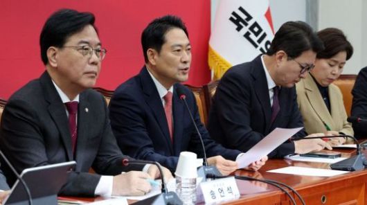 장동혁 국민의힘 대표가 12일 국회에서 열린 최고위원회의에서 발언하고 있다.