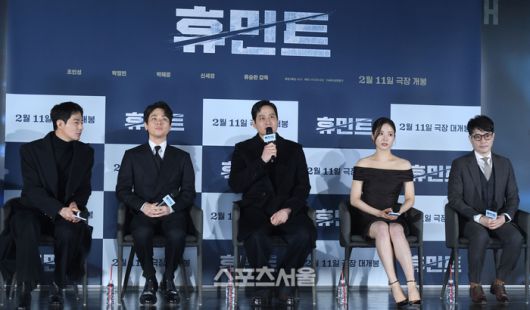 박해준이 12일 서울 성동구 롯데시네마 건대입구에서 열린 영화 ‘휴민트’ 제작보고회에서 질문에 답하고 있다.