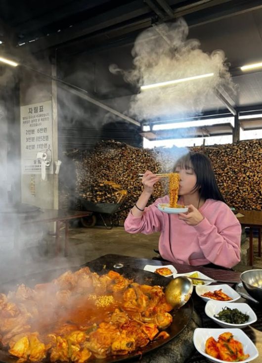 공개된 사진에는 대형 불판에 가득 담긴 닭매운탕을 먹고 있는 쯔양의 모습이 담겨 있다.