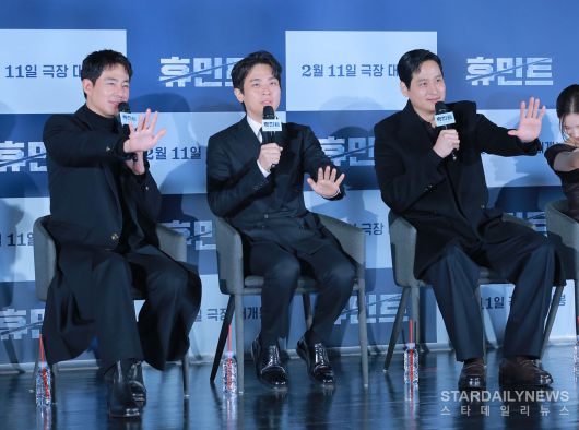 [스타데일리뉴스=박병준 기자] 조인성, 박정민, 박해준이 12일 오전, 서울 광진구 롯데시네마 건대입구에서 열린 영화 '휴민트' 제작보고회에 참석했다.