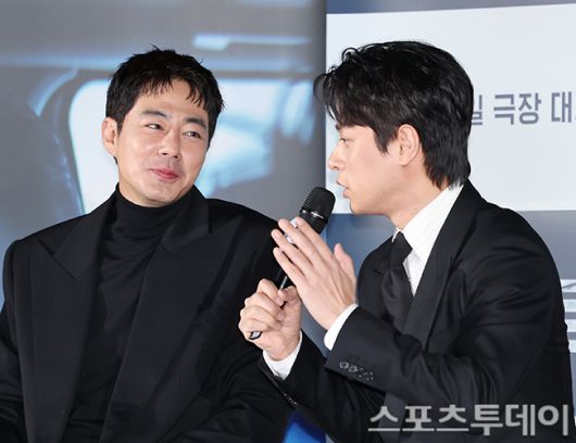 [스포츠투데이 권광일 기자] 배우 조인성, 박정민이 12일 오전 서울 광진구 자양동 롯데시네마 건대입구점에서 열린 영화 '휴민트' 제작보고회에 참석해 포즈를 취하고 있다. 2026.01.12.