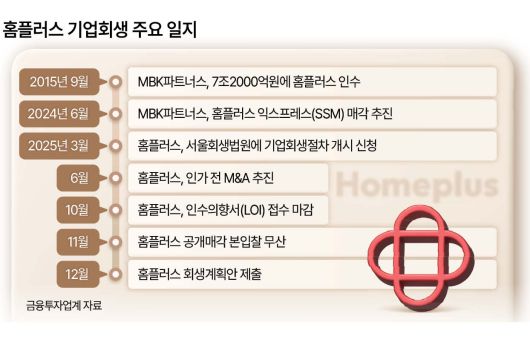 사모펀드(PEF) 운용사 MBK파트너스가 홈플러스 인수 10년 만에 최대 암초를 만났다. 홈플러스의 회생 및 매각절차 향방은 법원의 결정에 따라 분수령을 맞이할 전망이다.