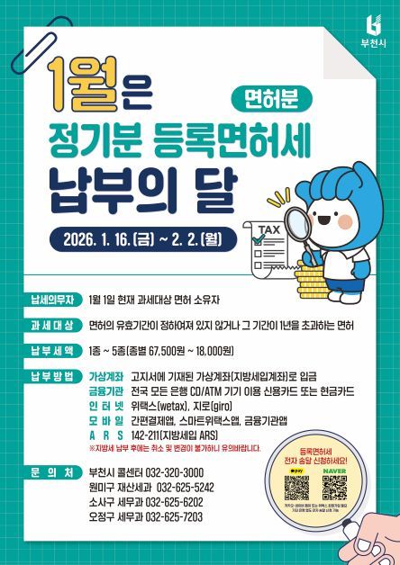 ▲2026년 정기분 등록면허세(면허분) 납부의 달 홍보 안내문 ⓒ부천시 |