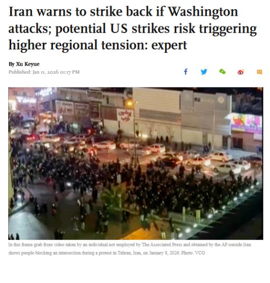 이어 뤼 연구원은 타국 내정에 대한 미국의 난폭한 간섭을 비판하며 "현재 미국의 정책과 셈법으로 볼 때 미국은 이란을 공격할 군사력을 보유하고 있지만, 그렇게 함으로써 얻을 수 있는 전략적 이점은 전혀 없다"고 지적했다고 글로벌타임스는 덧붙였다.